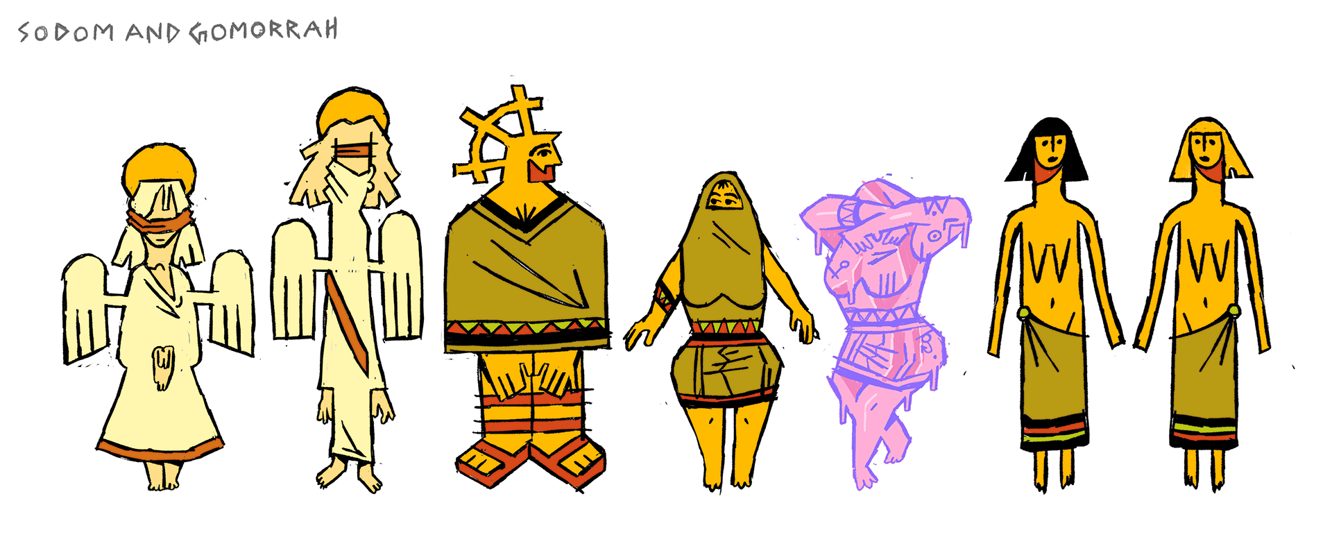 character lineup and color script for unreleased SODOM AND GOMORRAH adaptation. 2024.